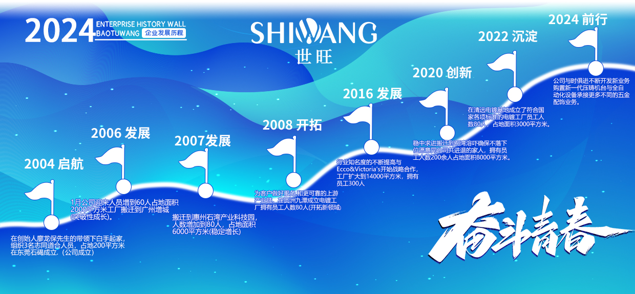 世旺五金是一家專業從事手袋箱包五金配飾定制生產的工廠,始創于2004年,至今20年五金配飾定制經驗,是集研發、設計、制造、電鍍、銷售于一身的企業,擁有14000多平的生產基地,全自動化生產能力,自有模具制造車間和電鍍工廠,日產能20多萬件,還有強大的技術團隊和高效的銷售網絡。我們以市場需求為導向,不斷探索和創新,在產品品質和性能上達到領先水平。